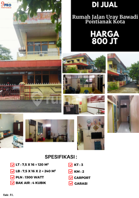 Access To: * Near Places of Worship * Near Schools * Near Food Areas * Near City Center Specifications: ● Land Area: 7.5 x 16 = 120 m² ● Building Area: 7.5 x 16 x 2 floors = 240 m² ● Bedrooms: 3 ● Bathrooms: 2 ● Water Tank: 4 Cubic ● Electricity: 1300 watts ● Carport ● Garage