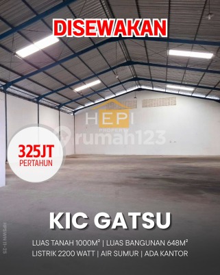 For Rent Warehouse in KIC Gatsu Semarang Land Area 1000m² Building Area 648m² Electricity 2200 watt Well Water Office Included Price 325 million (Excluding PBB and PPH) Minimum Lease 2 years Contact Mobile+WhatsApp Jimmy San in User Profile hpSwn