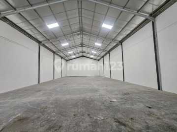 There is office space & security post Warehouse for Rent Clean Near Tanjung Mas Port Semarang container access K-300 concrete floor water purchased separately Building > width 15 meters, length 32 meters > side height 7 meters, center height 9-10 meters