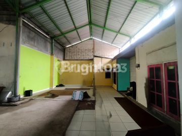 For Rent in Semarang: Strategic warehouse for rent on Wolter Monginsidi main road, 12m wide front road, suitable for business. Includes office space, bathroom, kitchen. Building area 200m², width 8m, length 25m, 2200W electricity, well water, west-facing, with SHM certificate.