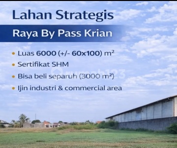 Industrial plot on the Krian bypass main road Positioned along the main road Super strategic. Major road. Accessible for 40-foot containers Freehold Title Industrial Zone Drainage permit already in place Requires 1.5 meters of land filling Details: Land Area 6,060 m2 Dimensions 60x100 Price 3.3 million per meter Can be purchased half area 3,000 m2
