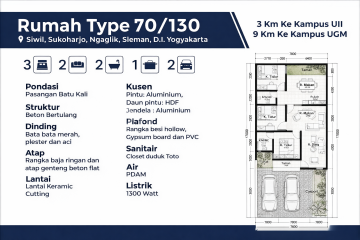 The opportunity to own a home in one of Sleman's most sought-after locations is now wide open. Griya Siwil presents itself as a modern house specifically designed for today's families, offering functional layouts, spacious land, and a refreshing, comfortable atmosphere to enhance the quality of life for you and your family. Located in Ngaglik, Sleman, this residence boasts highly strategic access advantages, being close to Gentan Market, near Kaliurang Road, and the fast route to UII Campus. A comfortable environment combined with a developing location makes Griya Siwil not only ideal as a place to live but also a high-value investment asset for the future. Come on, contact us for a consultation and schedule your survey with us immediately for FREE!! Price: 875 Million Address: Siwil, Sukoharjo, Ngaglik, Sleman, Yogyakarta. Specifications: - Land area: 130 m2 - Building area: 70 m2 - Bedrooms: 3 rooms - Bathrooms: 2 rooms - Living Room - Carport - Electrical power: 1300 watts - Water source: PDAM - Facing north Nearby Locations: - 2 minutes to Bale Merapai - 6 minutes to Gentan Market - 6 minutes to Kaliurang Road km 11 - 10 minutes to UII Campus