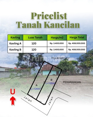 Land in Jogja is becoming increasingly scarce and expensive! Today you can still get a price of Rp 3.4 million/m² in the strategic location of Ngaglik, but tomorrow it might not be available. With a 5-meter front width and ideal length, it's perfect for building a residence or commercial business. Close to major road access, public facilities, and even renowned campuses like UGM and UNY. Imagine owning land in the busiest spot in Jogja. Your residence or business will be highly sought after by tenants. This isn't just buying land; it's buying a money-making machine! Address: Sinduharjo, Ngaglik, Sleman Regency, Special Region of Yogyakarta Price: 3.4 million/m² Negotiable! Legality: SHM (Certificate of Ownership) for Yard Specifications: Land area: 120 m² Front width of plot A = 5.5 m x 20 m Front width of plot B = 5 m x 21 m Concrete road access Nearby location information: - East of Al Ikhlas-Kancilan Mosque - 350 meters from Jalan Raya Kapten Haryadi - 650 meters to Merapi View Housing Complex - 900 meters to Jl Damai - 2 minutes to Mie Sapi Banteng - 2 minutes to Jl Palagan - 3 minutes to Bale Hinggil - 4 minutes to FASHION ICON - 5 minutes to Sate Ratu - 6 minutes to Pasar Colombo - 13 minutes to UGM and UNY Secure your unit immediately before this golden opportunity disappears... Contact us and schedule your survey right away...