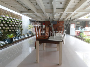 Rumah atau restoran di pusat kota solo, luas tanah 508m2, luas bangunan 400m2, 2 lantai, konsep modern tropis, cocok untuk resto atau kantor, suasana asri dengan landscape memukau, ada ruang kantor dan ruang serba guna, pln 11000w, air pam, harga 9M nego