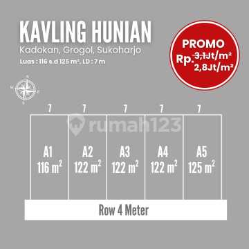 Another from Ratu Property, premium plots of land in Solo Baru. Prime location in the Solo Baru business district 5 minutes to The Park Mall 300 meters from the elite residential area "Modern Park Scandinavian" Suitable for a cozy residence or building employee boarding houses for Soba. Safe investment with dynamic profit growth Premium Location: Situated in the Solo Baru area, close to shopping centers, schools, hospitals, and easy access to various modern facilities. Value Appreciation Potential: Solo Baru is an area with high economic growth, making land here a promising investment. Investment Flexibility: Ideal for building a dream home, business, or holding as a long-term asset. Plot Specifications: Land areas vary, starting from 116 m² to 125 m². You can purchase more than one plot if you need a larger area. Secure legality with certificate of ownership (SHM). Complete infrastructure: concrete roads, water channels, and electricity available. Advantages of Investing Here: Competitive prices with easy payment options (cash or 12 installments interest-free). Scenic and planned environment, ideal for families or businesses. Close to popular destinations, 5 minutes to The Park Mall Solo Baru. Land assets grow over time. There's no story of land prices falling because land is not a currency eroded by inflation. It's smart to buy today. Choose plots in East Solo Baru, a step away from office and industrial areas. Address: Kadokan Village, Grogol District, Sukoharjo Regency Specifications: - Area 116 m2 - 125 m2 - 5-meter road access - SHM legality - Flexible Down Payment Location Info: - 1 km from Solo - Grogol Main Road - 1.5 km from The Park Solo Baru Integrated Business Area Strategic, Premium & Wallet-Friendly Come... survey the location. Click to chat on WhatsApp. The important thing is to secure the location first.