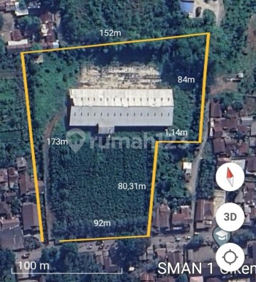 L2052 Land and building area of 20,630 square meters x Rp 1.7 million = Rp 35.071 billion Factory faces South. FROM CIBADAK TOLL GATE 20 MINUTES TO THE FACTORY LOCATION. FROM JAKARTA TO THE FACTORY LOCATION APPROXIMATELY 1 1/2 HOURS #276156