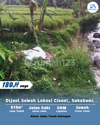 Land area 813m² Location Cisaat, Sukabumi - Rice field status - Access via dirt road on dikes - Pedestrian access Price 180M negotiable