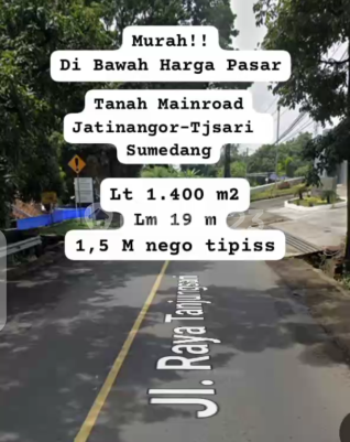Land for Sale on Mainroad Tanjungsari, Jatinangor! - Land Area 1400m² - Certificate of Ownership (SHM) - Price: Rp 1.5 Billion, slightly negotiable - Strategic location on Mainroad Tanjungsari - Close to Campuses (UNPAD & ITB) - Ideal for property investment or business development #AffordableLandJatinangor #MainroadTanjungsari #PropertyInvestment #StrategicLand #JatinangorProperty #SHMLand #GreaterBandungProperty