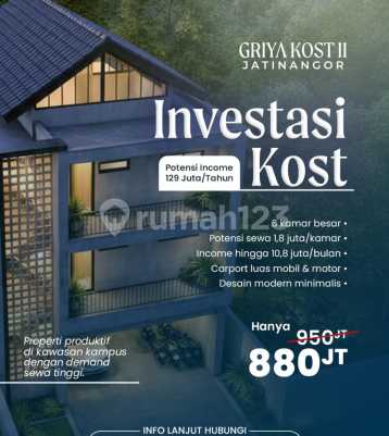 ️Griya Kost 2 Jatinangor Highly Profitable Investment Very Promising Prospects Comes with Rental Guarantee Very Flexible Payment Options Mortgage Available Cash Payment (Discounts available, attractive) Installment Payment Available This Griya Kost 2 is designed to meet the need for a Very Comfortable residence for students. This kost has the added value of a Double Balcony to enjoy the Beautiful Mountain View with a still very Cool Air Temperature. INCOME SIMULATION FOR 6-ROOM KOST Rent per room: Rp1,500,000 / month Income: Rp9,000,000 / month Rp108,000,000 / year -Potential annual rent increase of at least 10% -Potential ROI up to 12% per Year -Potential Capital Gain up to 20% per Year ️Highly Strategic Location: 1.Only 950m from UNPAD Gate 2.Only 1.9km from ITB Gate 3.Only 1.8km from Jatinangor Toll Gate 4.Only 1.4km from Jans Park Kost Specifications: 2-Story Building 72m 6 Bedrooms Ensuite Bathroom Spacious Carport Double Balcony with Charming View Shared Kitchen Contact GANI WA / 08132206xxxx