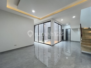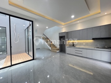 Ready House Kalikepiting Land Area: 135 m² Dimensions: 7.7x17.5 m² - Building Area: 158 m² - Building: 2 Floors - Bedrooms: 4+1 - Bathrooms: 3+1 - Orientation: East - Water: PDAM - PLN: 5,500W Token - Granite Tile: 80x80 - Sanitary: TOTO - Road Row: 6 Meters Free/Bonuses: - Kitchen Set Interior - Fence - Canopy - Upper & Lower Water Tanks - Built-in Stove Linea by Teka - Concealed AC Pipe Installation for 4 Units - Water Heater Channel Installation in every bathroom - Solid Merbau Wood Main Door Price: 2.35 M