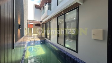 2-Story Luxury House PONDOK NIRWANA - Rungkut, East Surabaya Swimming Pool Land Area 200 m² (10×20) Building Area 300 m² (2 Floors) 4 Bedrooms + 1 (2 Master Bedrooms) 4 Bathrooms + 1 Freehold Certificate | North Facing PDAM Water Supply | PLN 3,500 Watt Electricity Carport for 2 + 1 Garage ROW Wide Road for 2.5 Cars Price Rp 5.2 Billion
