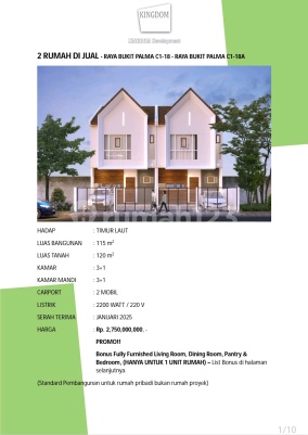 - House price includes Notary fees, Deed of Sale and Purchase (AJB), Name Change, and Land and Building Acquisition Duty (BPHTB) - Excludes Mortgage (KPR) fees - New house - Can be unfurnished / empty - Wide road row https://propnexplus.com/rumah/bukit-palma-blok-c-luar-cluster-furnished-baru-murah-98657