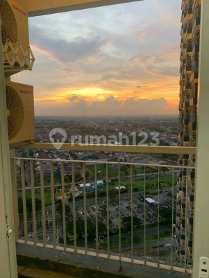 Balcony view pool and city * Condition: Fully Furnished 1. 2 AC units 2. Smart TV 3. Wardrobe + Dressing table 4. SERTA SPRING AIR brand spring bed 160*200 5. Dining table 6. Electric stove 7. Sofa 8. Shoe rack/display shelf 9. 2-door refrigerator 10. Kitchen cabinet 11. Ariston water heater