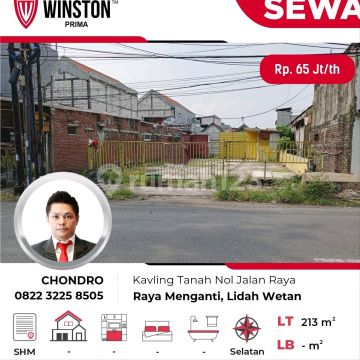 *DI SEWAKAN* *KAVLING/TANAH* NOL JALAN RAYA *_HARGA Rp.65jt/thn*_ Raya Menganti Lidah Wetan @Surabaya Barat _*Lokasi jalan raya antara perumahan Wisata bukit mas & Prambanan*_ LT: 213 m² Dimensi : 10 x 21 Hadap Selatan (ada PDAM & PLN) Hubungi: Chondro