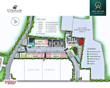 One Arcade is located in a premium area at the heart of business and lifestyle, surrounded by a market of 13,000 families residing in CitraLand Surabaya. Strategically positioned, it is just a step away from Radial Road, embracing the concept of One Place for All, making it ideal for modern and comprehensive business concepts. A special feature of this shophouse is the attic rooftop, which can also be utilized for your business or lifestyle space. Be the first to seize the business opportunity at One Arcade @Gwalk, situated in the ever-progressing and developing independent city center of CitraLand Surabaya.