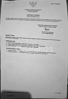 Spacious Strategic Land for Quick Sale in Tabanan 1901xxxxNO.298) (@TimpalEka) Property Details For Sale: Investment Land in Tabanan Province: Bali City: Tabanan Area: Tabanan Road Width: 6 meters Land Area: 1,500 m² Water: Available Electricity: Available Legality: SHM (Certificate of Ownership) Road Access: Two-way Advantages - Below market price in the Tabanan area - Ideal size for villa development or investment - Developing area with potential for value appreciation - Suitable for medium to long-term investment Facilities - Vehicle access - Quiet environment Price Rp 3,000,000,000 Negotiable