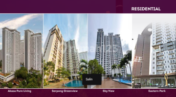 Newly ready-to-occupy apartment in BSD City Akasa Pure Living sold at an affordable price Apartment unit types: Studio Type Gross Area: 22.96m² Net Area: 18.20m² Studio-A Type Gross Area: 25.83m² Net Area: 20.47m² Junior 1 BR Type Gross Area: 27.83m² Net Area: 22.06m² 1 BR Type Gross Area: 30.70m² Net Area: 24.33m² 2 BR-A Type Gross Area: 50.82m² Net Area: 40.28m² 2 BR-B Type Gross Area: 50.94m² Net Area: 40.37m² Facilities: Elevator Swimming Pool Gym Garden Basketball Court Jogging Track Playground Commercial Area BBQ Area Highly strategic location with easy access! SECURE YOUR UNIT IMMEDIATELY BY CONTACTING PROVIDENCE PROPERTY!