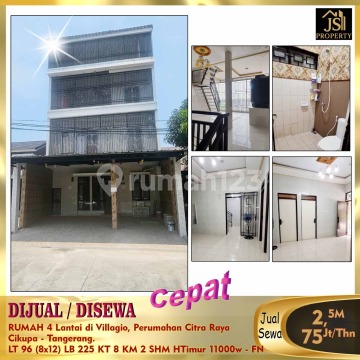 FOR SALE / FOR RENT 4-Story House in Villagio, Citra Raya Housing Cikupa - Tangerang. Flood-Free, Ready-to-Occupy House, Luxurious Interior Design, Smart Lock Door with Fingerprint, Card & PIN Carport fits 3 cars, includes Water Tank & Pump Machine. Land Area 96 m² Dimension Size 8 x 12 m² Building Area 225 m² 4 Floors 8 Bedrooms 2 Bathrooms 3 Storage Rooms 11,000 Watt Electricity WTP Water & Well Water Facing East Freehold Title Sale Price 2.5 B Negotiable Rental Price 75M/Year