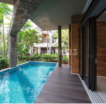 Tropical Industrial Minimalist Style House by architect atelier riri in Bintaro Jaya, Sector 9 (SOUTH TANGERANG) GENERAL SPECIFICATIONS: - Land Area: 312 m2 - Building Area: 420 m2 (2 Floors) - Certificate: SHM (Freehold Title) - Orientation: East - Inside a complex - Facing a park - One gate system DETAILED SPECIFICATIONS: - BR: 5+1 (one room can be divided into two due to its size) - 2 Art rooms - Bathrooms: 4+1 - Laundry and drying area - Front and side gardens - Terrace balcony - Electricity: 7000Watt - Private swimming pool - Water: Jet Pump + Torrent - Water heater - Garage: 2 Cars - Carport parking space: 1 Car - Storage room PUBLIC FACILITIES: - 100M to Bintaro Grand Mosque - 2 KM from Pondok Aren Train Station - 1 KM from Pondok Aren Toll Road - 2 KM from BSD Toll Road - 1KM from Bintaro Modern Market - 500M to BXChange Mall - Surrounded by many international schools