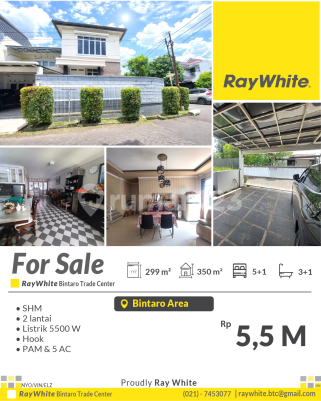 Specifications *Land area 299 m2 *Building area 350 m2 *5+1 bedrooms *3+1 bathrooms *2 floors *PAM & 5 AC units *Hook *Carport Price 5.5 B negotiable *Vin CASH & KPR accepted Contact: Febry 08135012xxxx