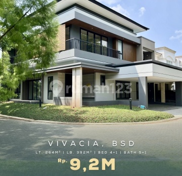 MORE EXCLUSIVE! VILLA-STYLE LIVING! NEW HOUSE! GUARANTEED TO LIKE! NEXT TO A PARK! SUITABLE? FEEL FREE TO NEGOTIATE! GREAT UNIT, BEST PRICE! COMFORTABLE & LUSH CLUSTER SUPER STRATEGIC LOCATION VIVACIA EMINENT - BSD Land Area 264 m2 Building Area 392 m2 4+1 Bedrooms 5+1 Bathrooms Corner Unit Premium Tile Flooring 2 Floors Wide ROW All Brand New Carport Air Conditioning Water Heater Kitchen Set A Step Away from BSD Business Center Super Strategic Location Close to Mall Wide Road ROW Flood-Free Lush & Cool Area One Gate System 24-Hour Security More info: G Homes Alam Sutera - wa.me/628567007xxx PT Golden Homes Propertindo (Licensed Real Estate Agent)