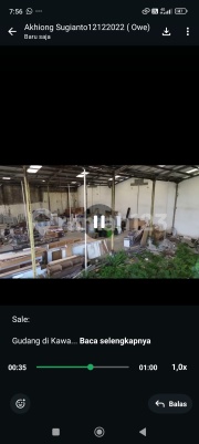For Sale: Warehouse in Akong Mekar Jaya Area Sepatan, Tangerang - Banten Land area: 1,216 sqm Building area: 792 sqm Dimensions: 24 x 33m Electricity: 2,200 Watt Legality: SHM (Certificate of Freehold Title) 14 KM from Tanah Tinggi Toll Road Access for 40-foot Containers Price: 8.5 Billion Contact: 08190583xxxx Akhiong Sugianto Thank you