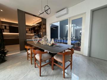 Luxury House, Brand New with Modern Design. *@Sutra VICTORIA, AlamSutra.* Furnished with Luxurious and Homey Design. Land Area: 12 x 20m² Building Area: 450m² Bedrooms: 4+1 Bathrooms: 4+1 *DESCRIPTION:* - Close access to Alam Sutra toll road - 15m² wide row street *1st Floor:* - Large swimming pool - Wet kitchen - Dry kitchen - Smart lighting - Comfortable living room - 2PK AC in the living room - Dining table by Bottega - Bottega flooring (endless design) - Luxurious toilet with electric closet - Large swimming pool includes pump and filter machine - Genuine Ulin wood decking *2nd Floor:* - Merbau staircase SPC flooring - 1+1.5PK AC in the master bedroom - All bedrooms have en-suite bathrooms - Luxurious master bedroom and toilet with electric closet *Open Price: 8.3M negotiable*