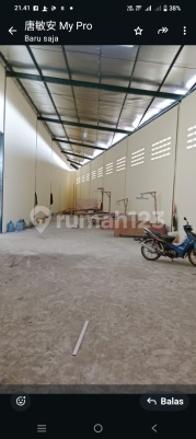 FOR RENT Warehouse on Salembaran Street, Teluk Naga, Tangerang. Land area: 854 m² (22x39) Building area: 866 m² Electricity: 4400 Bathrooms: 4 (3 in the office, 1 in the warehouse) Office: 3 floors Corner position North facing 40" container access Rental price: Rp. 500 million/year, slightly negotiable. Minimum 2 years. Note: - 40 feet - Non-pollutant area