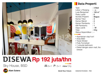 Apartment in BSD City. Acquire this modern 6-story apartment for rent, offering a complete facility environment, perfect for those seeking a secure residence. Key Property Specifications: - Bedrooms: 3 - Bathrooms: 2 - Certificate: PPJB (Agreement for Sale and Purchase) - Electrical Power: 3300 W - Furniture Condition: Furnished Equipped with: - Kitchen Set. - Sink. - Water Heater. - Refrigerator. - Air Conditioner. - Stove. - Swimming Pool. - Garden. - Swimming Pool. Premium Features: - Flood-Free. - Move-In Ready. - Fully Furnished. - Close to Shopping Centers. - Near International Schools. - Proximity to Universities. - Adjacent to Healthcare Facilities. - City Center Location. - City View. - Negotiable Property. - Strategic Location. Situated in BSD City, this apartment provides easy access to various attractive facilities. At a price of Rp. 0, you can own the best residence that is move-in ready and PPJB certified. Don’t miss the opportunity to enjoy investing in this comfortable BSD City area! Contact immediately for more information!