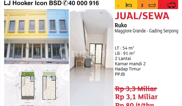 LT: 54 m² LB: 91 m² 2 Floors 2 Bathrooms Facing East PPJB