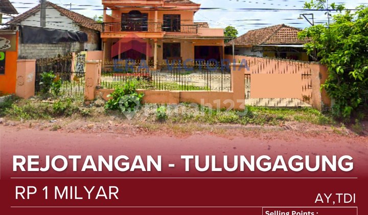 Provincial Roadside House with Large Land Near Rejotangan Market, SMKN 1 Rejotangan Tulungagung, Gas Station. Suitable for Residence, Business, or Investment. Specifications: Certificate: SHM (Freehold Title) Land Area: 470 m2 Building Area: 192 m2 2 Floors Bedrooms: 6 Bathrooms: 4 Carport: 3 Electricity: 1300W Water: PAM (Municipal Water) Orientation: North Price: 1 Billion IDR AY, TDI-Artar