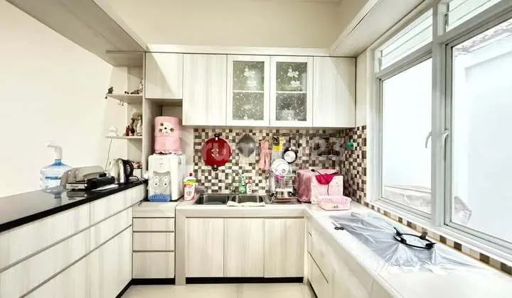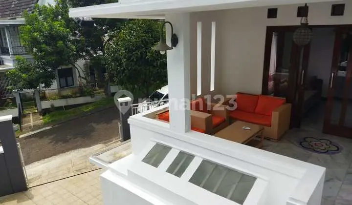 Beautiful and serene house for sale in Bukit Golf Riverside Cibubur Land area 212m2 (14m2 x 15m2) Building area 120m2 Hook 1 1/4 floors 2200 watts...