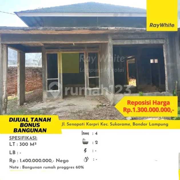 Land for sale with building bonus located at Jl. Senopati Korpri, Sukarame Subdistrict, Bandar Lampung City. Land area: 300 m² Selling price: ID...