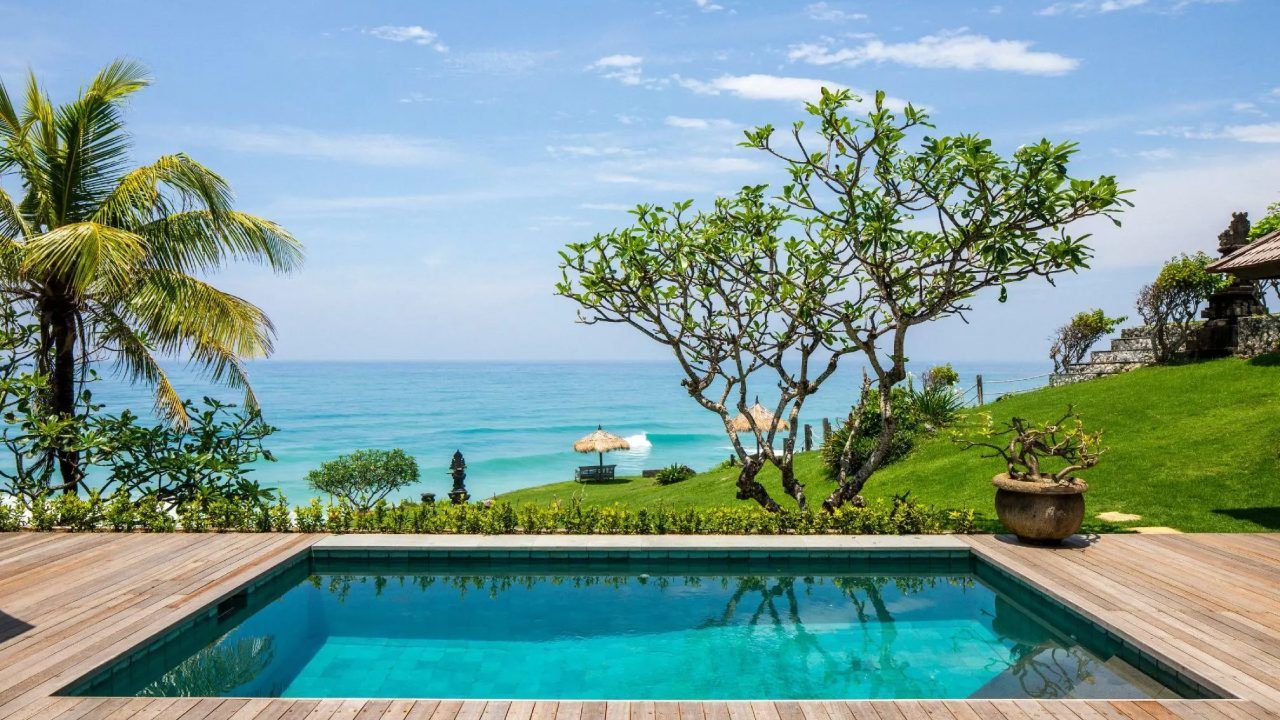 Vila ini berada tepat di tepi tebing Uluwatu yang ikonik dengan pemandangan laut lepas yang luar biasa.
