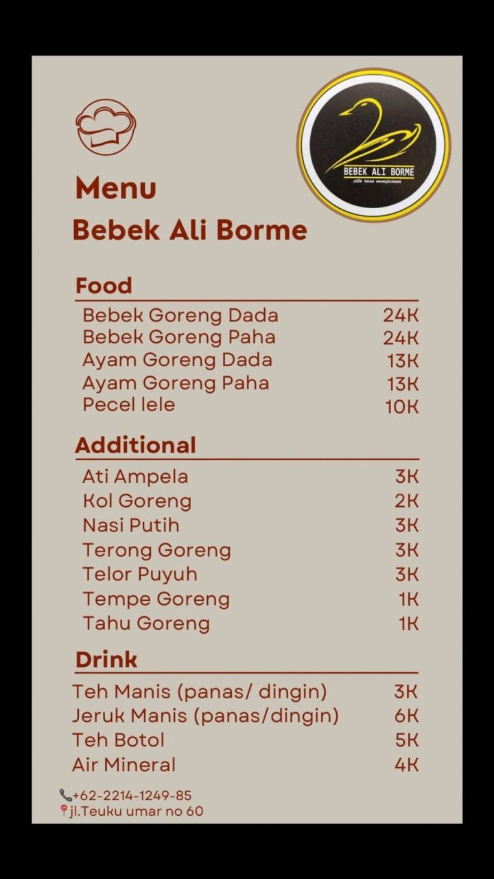 Menu Bebek Ali Borme