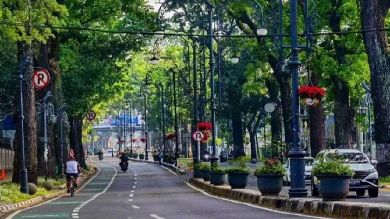 Pengunjung bisa menikmati jalanan yang rindang dengan pepohonan besar di kanan kiri, menciptakan suasana yang nyaman untuk berjalan kaki atau sekadar berkendara santai.