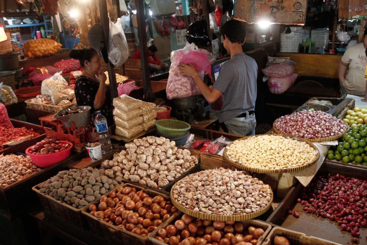 Terdapat kios sayuran, kios daging, hingga toko bahan kue di Pasar Pondok Gede.