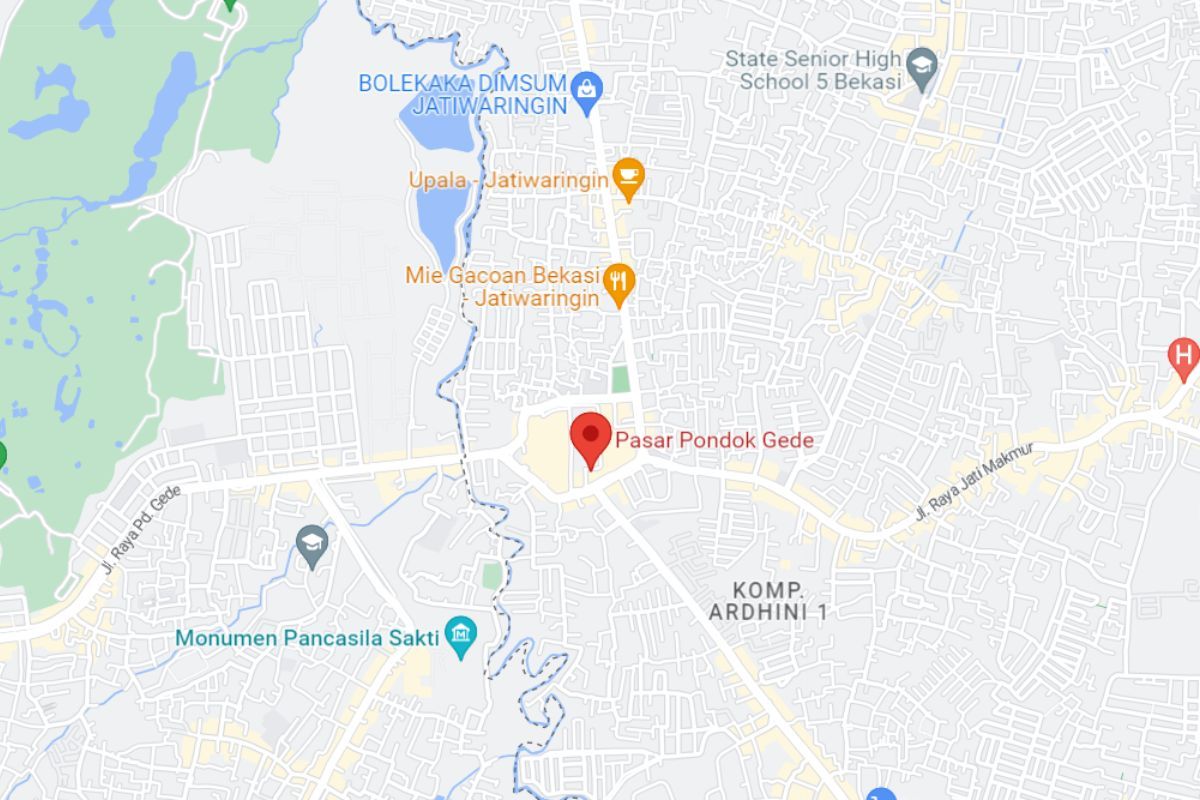 Alamat Pasar Pondok Gede di Jalan Jati Makmur No.15 Jatiwaringin Pondokgede, RT No.003, RT.001/RW.002, Jatirahayu, Kec. Pd. Melati, Kota Bks, Jawa Barat 17411.