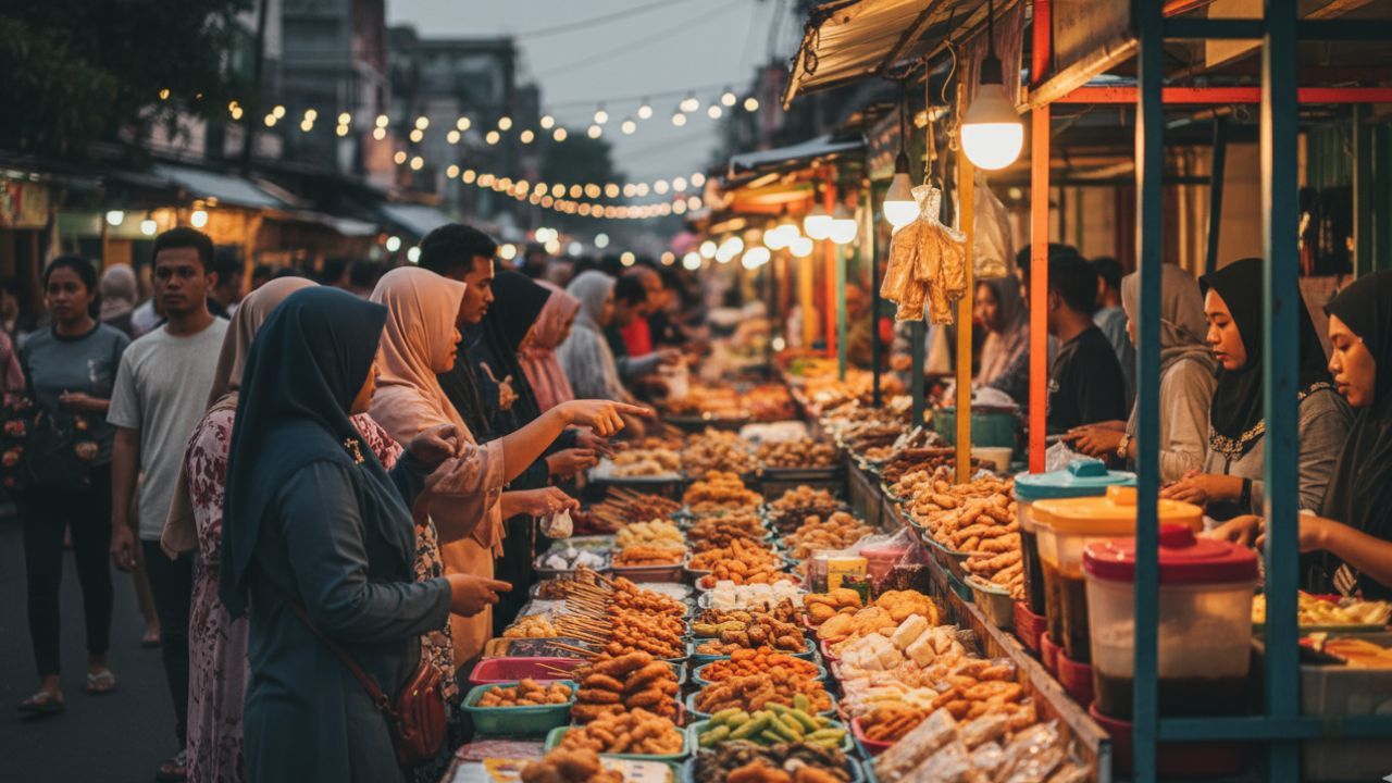 Suasananya terasa hidup menjelang waktu berbuka, dengan pedagang yang menawarkan berbagai hidangan khas daerah.