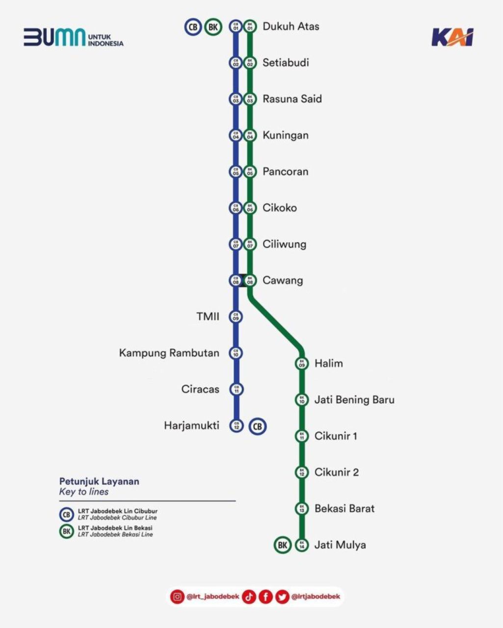 Berikut rute pemberhentian utama LRT lintas Cibubur: