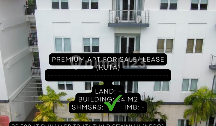 LEASEHOLD APARTEMEN NAKULA LEGIAN BADUNG, BALI TERSISA 15 UNIT APARTEMEN HARGA Rp. 500 JT LEASE 25 TAHUN LT : 2.200 M2 GLOBAL LB : 1.0...