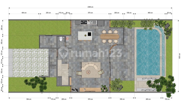 Villa Dijual Badung 3W Estate fuses modern living with primal nature. With a river-like pool, lush trees to mimic the forest, and a legion of p...