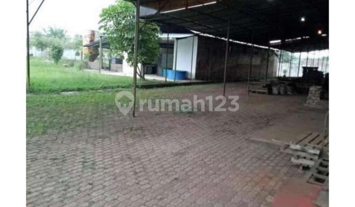 #21089 Akses langsung ke jalan provinsi, dapat dilalui kendaraan besar (mobil fuso hingga kontainer 40 feet), bebas banjir. Bangunan baja (open sp...