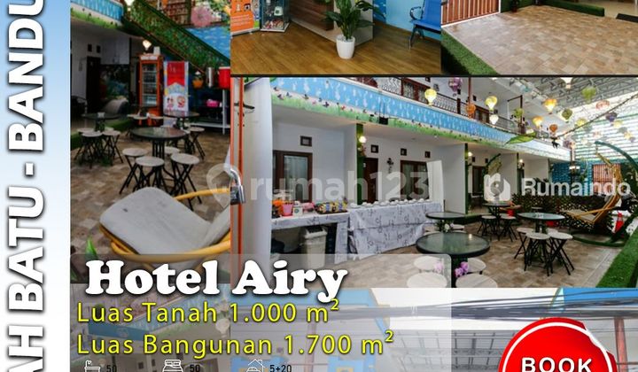 Dijual Hotel Setrategis Logam Buah Batu Bandung Lt.1000xxxx m2(2lt) Uk. 20x50 Hadap Barat KT 50 KM 50 Fasilitas : * Air Conditioner * Free Wifi *...