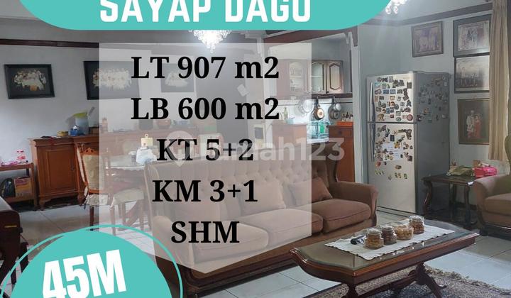 FS : Sayap Dago LT 520 m² Lb ± 500 m² shm 2 Lantai 2 pavilion 1 rumah induk 10 kamar tidur hadap utara Dan timur air pompa listrik 4500 Watt ...