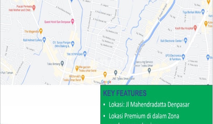 Dijual Tanah Bonus Gudang di Pusat Kota Denpasar