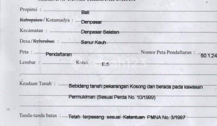 Tanah Strategis di Sanur - Itr Perumahan, Lokasi Premium (93V)