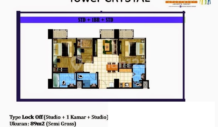 Project: Aerium Residence Apartemen baru dijual di Jakarta Barat Kondisi apartemen baru Luas bangunan 91 m2 2 kamar tidur, 2 kamar mandi Day...