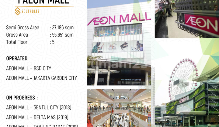 Dijual Apartemen Southgate Residence Elegance Tower (AEON MALL TANJUNG BARAT JAKSEL) Luas Bangunan 43 Kamar Tidur 1 Kamar Mandi 1 Lantai 6 View m...
