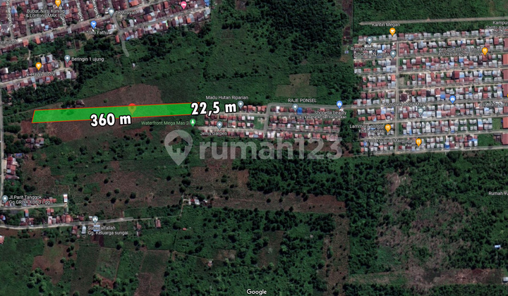 TANAH TEPI DESA KAPUR SAMPAI SUNGAI cocok tipe 36-45 Cocok perumahan subsidi. Lebar depan 22.5m Panjang kisaran. 800-900m Sampai sungai. Lebar sun...